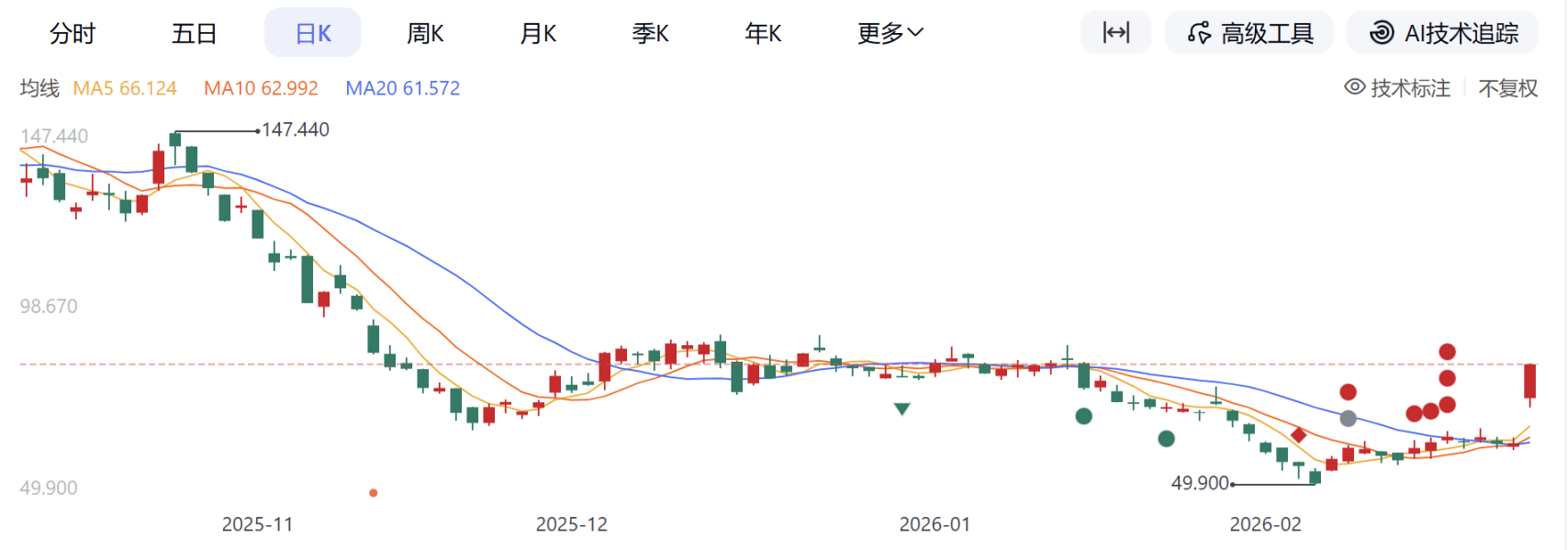 要知道,从去年 6 月 IPO 后触及 298 美元高点后,CRCL 股价一路回撤,2 月 5 日一度跌至 49.90 美元的历史低点。这次强势反弹,某种程度上是市场对前期过度悲观情绪的修正。