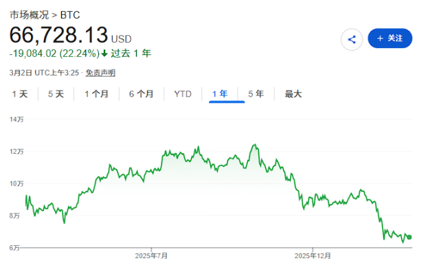 3 月 2 日,据彭博报道,做市商 Wintermute 援引摩根大通数据发布的最新报告称,自 2024 年底以来,散户资金持续向股票市场转移,这一趋势在去年 10 月加密市场崩盘后显著加速。比特币价格较历史高点约 12.6 万美元已近乎腰斩,目前交投于 6.6 万美元附近,而股票指数则持续走高。