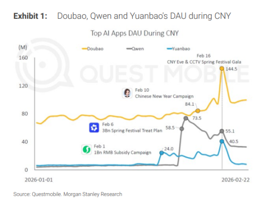 烧钱 80 亿是流量虚火还是真金,摩根士丹利在最新研报深度复盘 2026 年春节 AI 应用大混战,