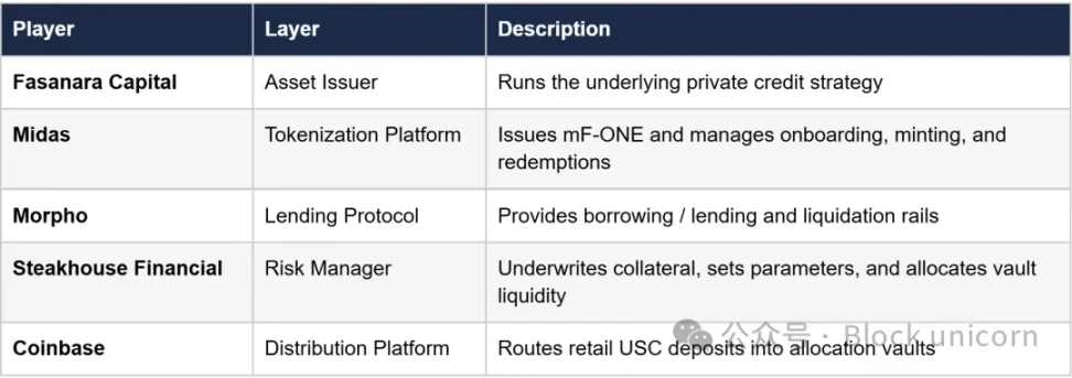 • 融资与分销。Coinbase 的 USDC 借贷产品将散户存款直接路由到 Base 上由 Steakhouse 管理的 Morpho 金库。Coinbase 用户在应用中点击「借出」仅看到收益率,而不会看不到底层的抵押品链。在后台,部分收益率是由借款人支付的利息产生的,这些利息以 mF-ONE 等抵押品作为担保。