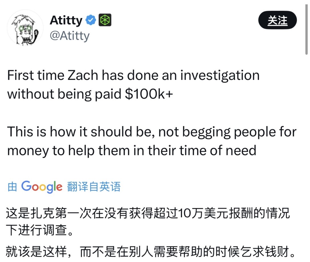 还记得上次 ZachXBT 似乎是给钱才办事的。🤔