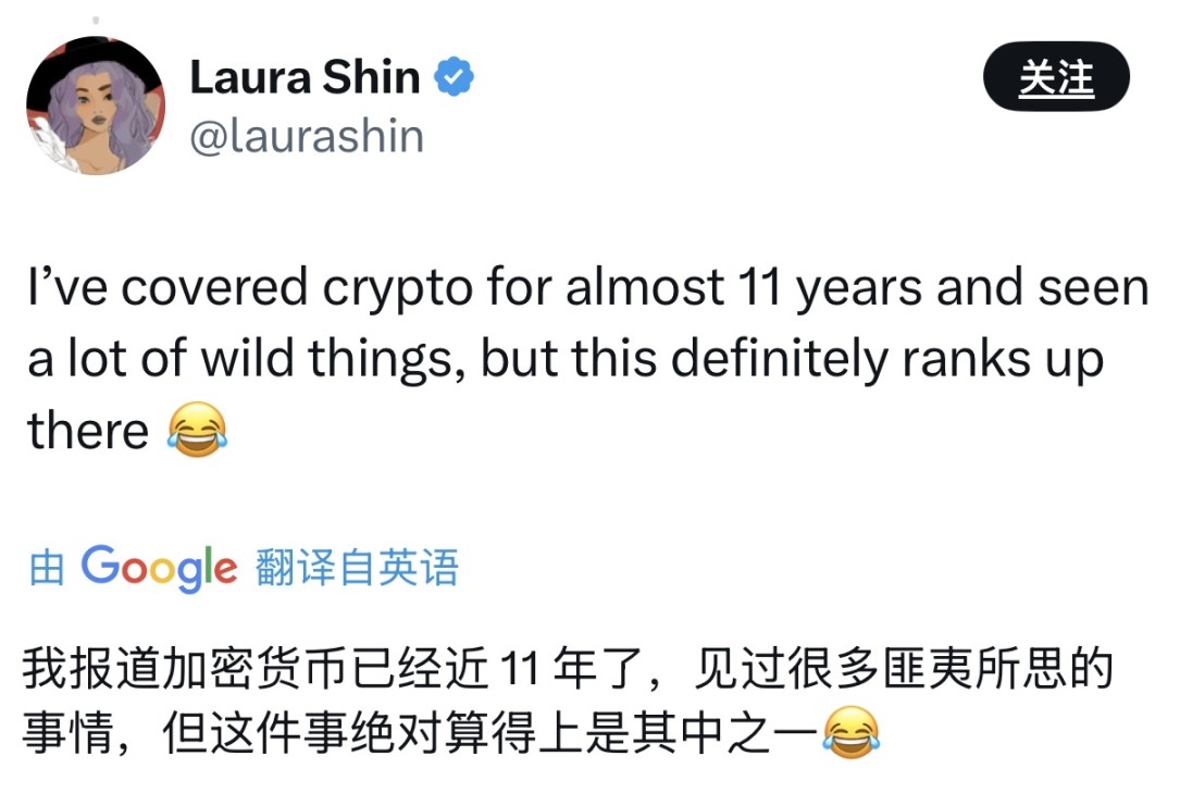 一位 KOL 表示,这应该是报道加密行业新闻 11 年来最匪夷所思的事件之一了。😂