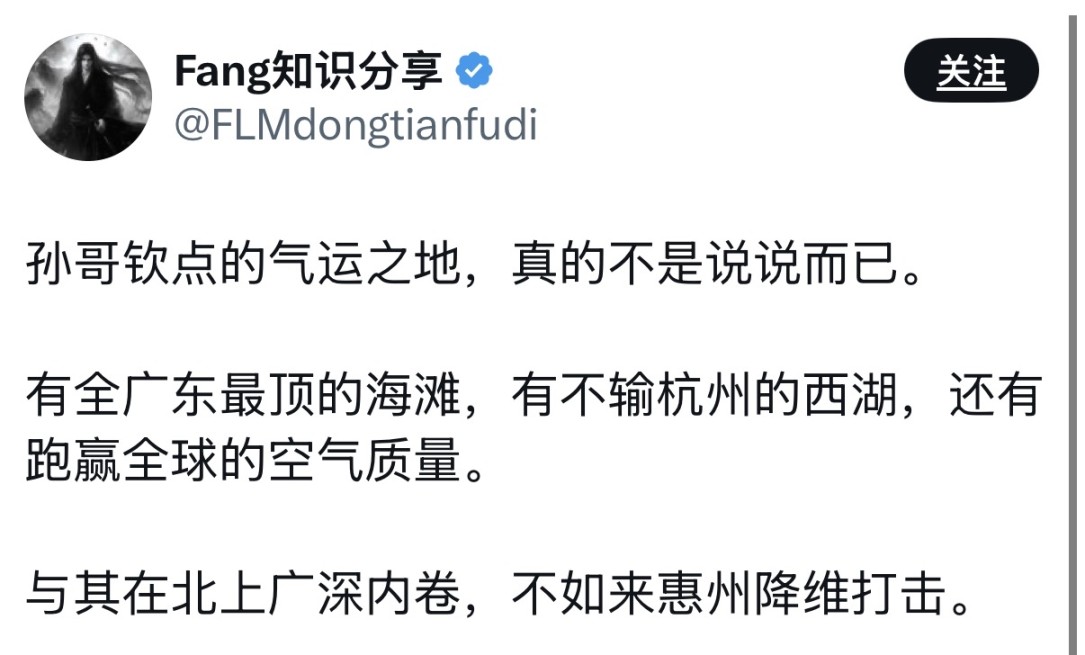 不过话说回来,惠州房价要是真涨了,记得分孙哥一点广告费。