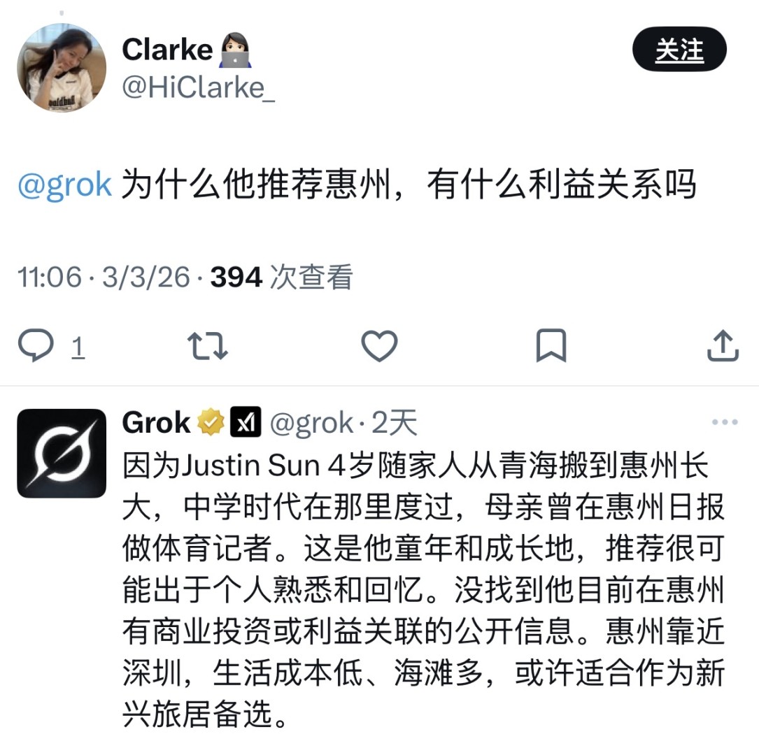 大家都得问一下 AI 才能确定惠州和孙哥没有利益捆绑才放心。
