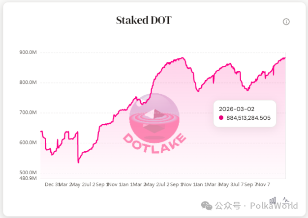 最新数据显示,Polkadot 网络质押的 DOT 数量创历史新高。目前已有超过 8.84 亿 DOT 被质押,较 2025 年 8 月低点增长约 14%。值得注意的是,Polkadot 计划在 3 月 14 日将 staking 奖励下调约 50%。https://x.com/polkaworld_pro/status/2029408256502956440