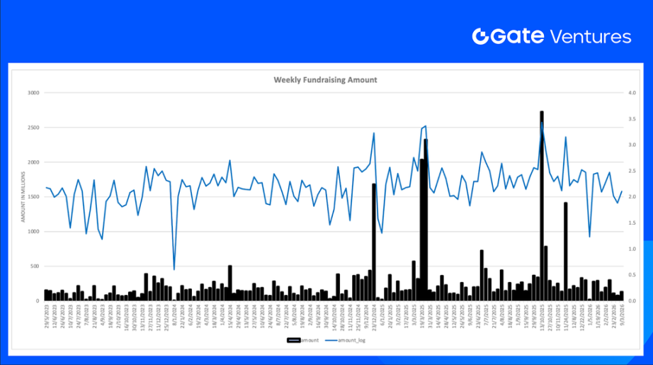 Total weekly fundraising surged to $127.5M for the second week of Mar-2026, an increase of 67% compared to the week prior.
