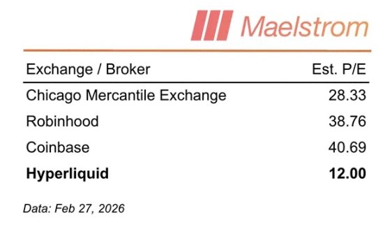 市场是前瞻性的。玩家们愿意为 Hyperliquid 的未来收益付多少钱?目前 HYPE 的市盈率约为 12 倍。和传统金融交易所比起来如何?