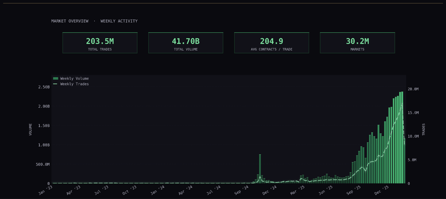 图注:Kalshi 交易量趋势图,总量超 417 亿美元