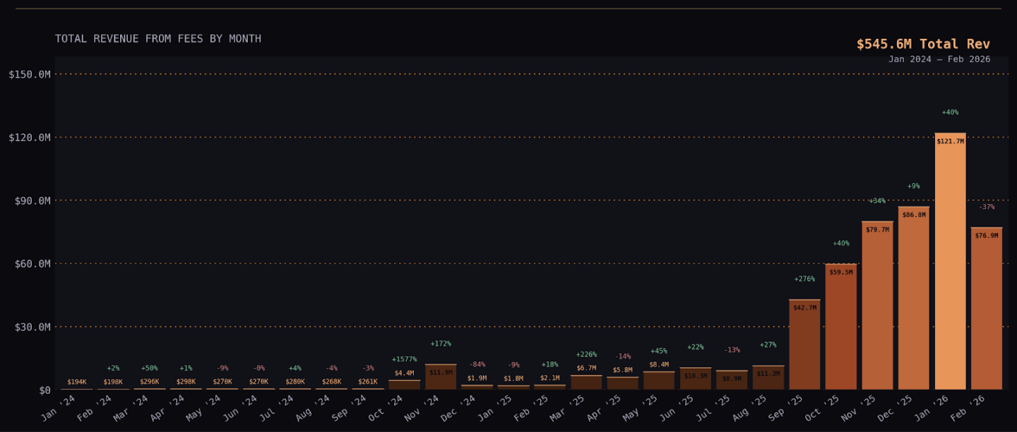 图注:Kalshi 月度手续费收入趋势