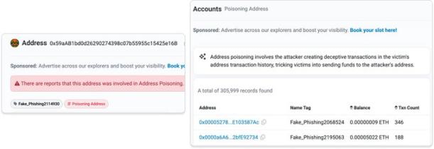 Etherscan 上的投毒地址标签 (https://etherscan.io/accounts/label/poisoning-address)