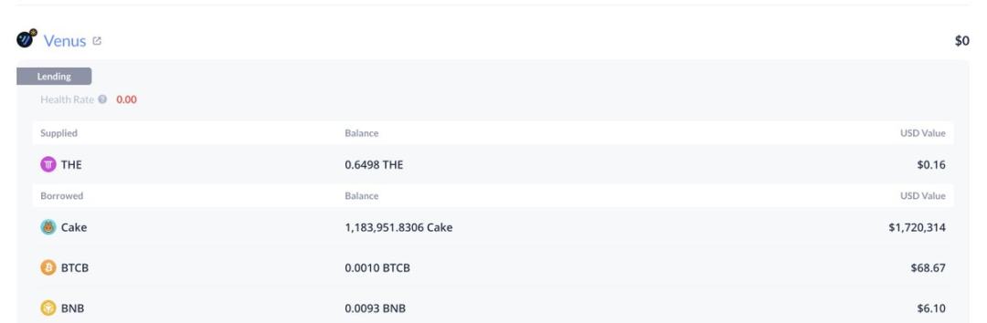 攻击者手上的抵押品,包含其预先准备的资产,以及攻击过程中继续买入的 THE,名义价值大约 30M。