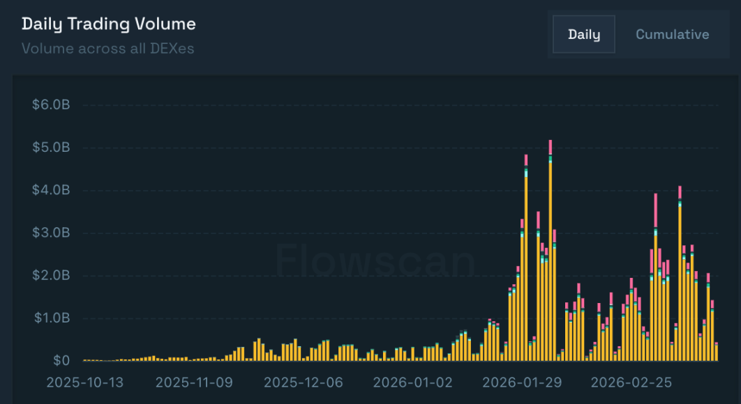 据 Flowscan 的数据,3 月 8 日当天,Hyperliquid HIP-3 市场的交易量超过了 8.8 亿美元,创下周末交易量的历史最高纪录。仅一周之后,这个数字又被刷新到了近 9.66 亿美元。