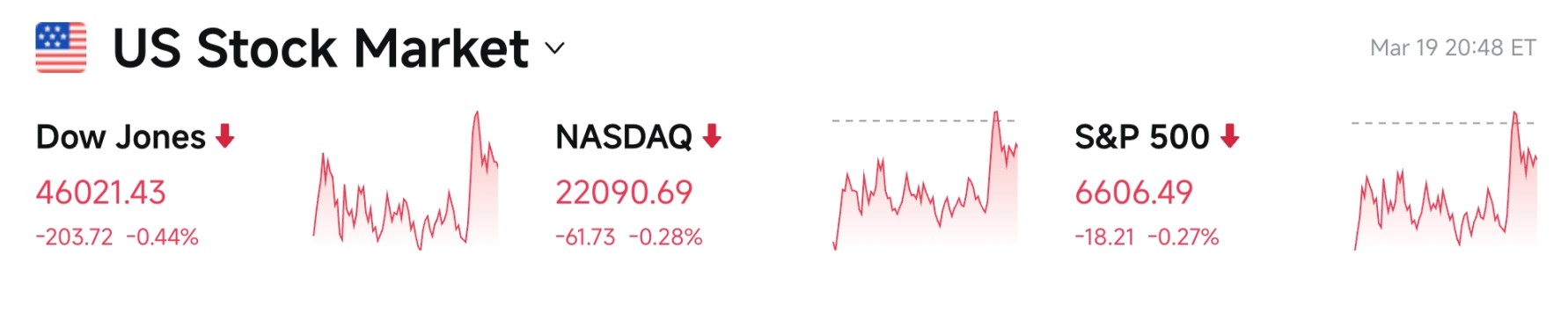 标普 500:跌 0.27% 报 6606.49 点,盘中跌幅收窄;