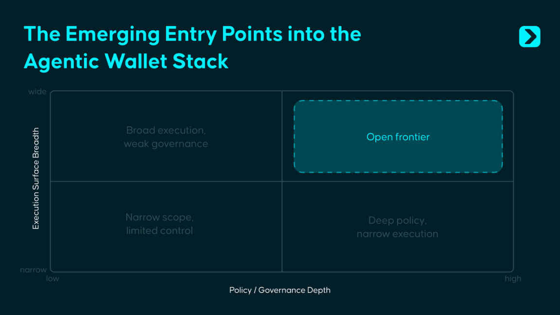 因此,Agentic Wallet 回答的是 Fat Wallet 之外的另一个命题:Fat Wallet 争夺的是用户入口,Agentic Wallet 争夺的则是软件开始直接支配资金时的控制权。