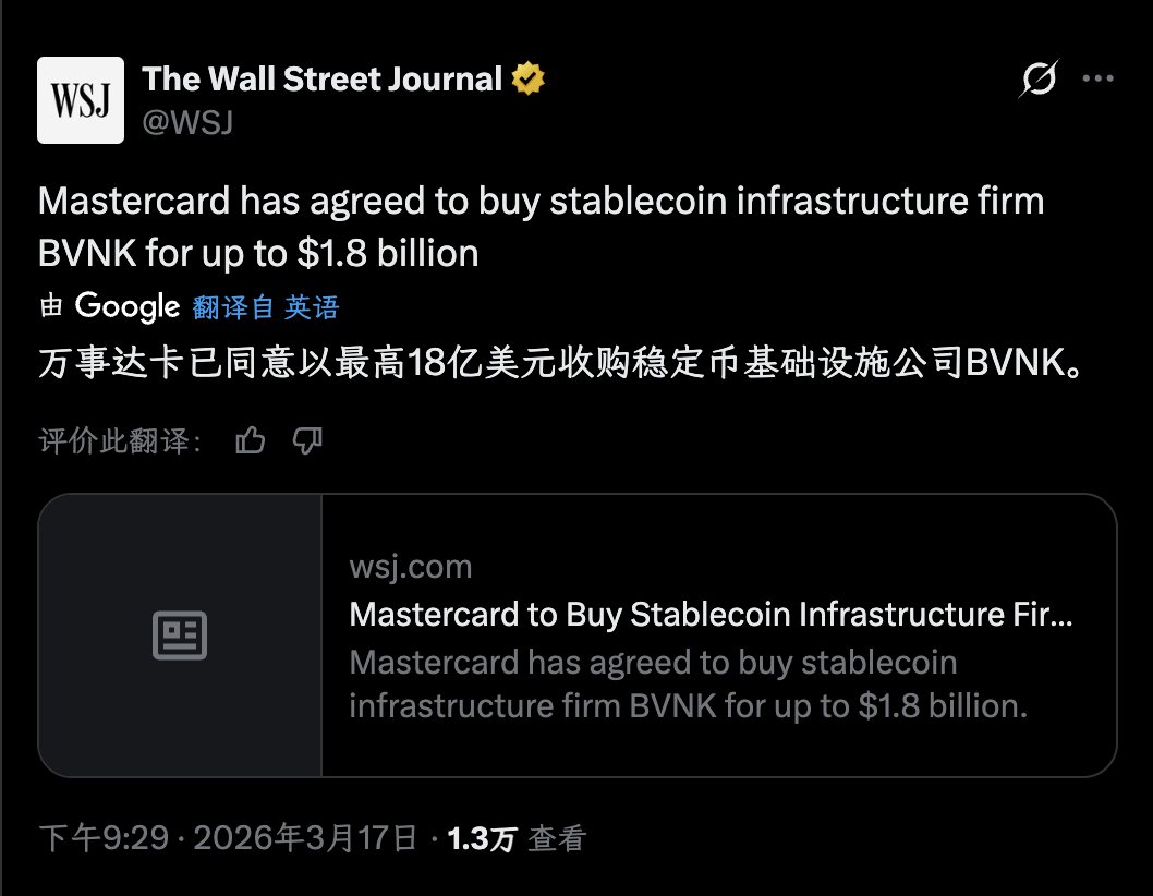 顺道聊聊退出问题,IPO、发币和并购。 BVNK 是少数位于欧洲的稳定币基础设施,长期面向银行体系推销稳定币解决方案,去年曾和 Coinbase 以 20 亿美元洽谈收购,今年算是打了折卖给万事达。 在我记忆中,从 Skiff 被 Notion 收购为转折,Web3 的项目开始接受收购逻辑,这也是背后 VC 喜闻乐见的一种退出方式 到了 2026 年,OKX/Binance/Deribit/Bybit 都和传统资本有深刻的投资关系,也标志着 2017 年以来淘金潮的结束 接下来的 Crypto,不会是一个非常性感的、极客的、小众的市场,但会是一个席卷全球的金融大市场 这种大市场必须更深刻、更普遍、更友好地“嵌入”普通人的生活,所以不会特别先锋、特别反叛,但是会更加狂暴 交易所在排队 IPO、山寨币在排队 DAT、DeFi 在排队进入华尔街,普通小散户会感到茫然失措,除了存钱赚利息,不知道该如何自处。 但我们必须承认,发币仍然是和 IPO、并购同等的退出方式,必须改变心态,对其进行祛魅,不是只有发币才叫退出。 我们每个人都需要接受并购和 IPO 这种方式,很神奇的是,在 DAO 转公司的当下,Pre-IPO 和股票代币化正在疯狂上链,这也是真实发生的事实。 我们曾认为短暂到达了未来,但现在需要等一下大家跟上进度,然后才能开发出新的资产发行和退出方式。 比如,A 股和港股会上市吗? 在封禁稳定币、加密货币的当下,大部分认为都不会,但是别忘了,杠杆循环一直在发生: - 区块链冲击美国金融秩序,最终美国不得不承认并接受; - 面对全方位的大国竞争,东方也必须做出某种对等反应。 这个传导过程非常真实,只需要足够耐心和资本耐受度。