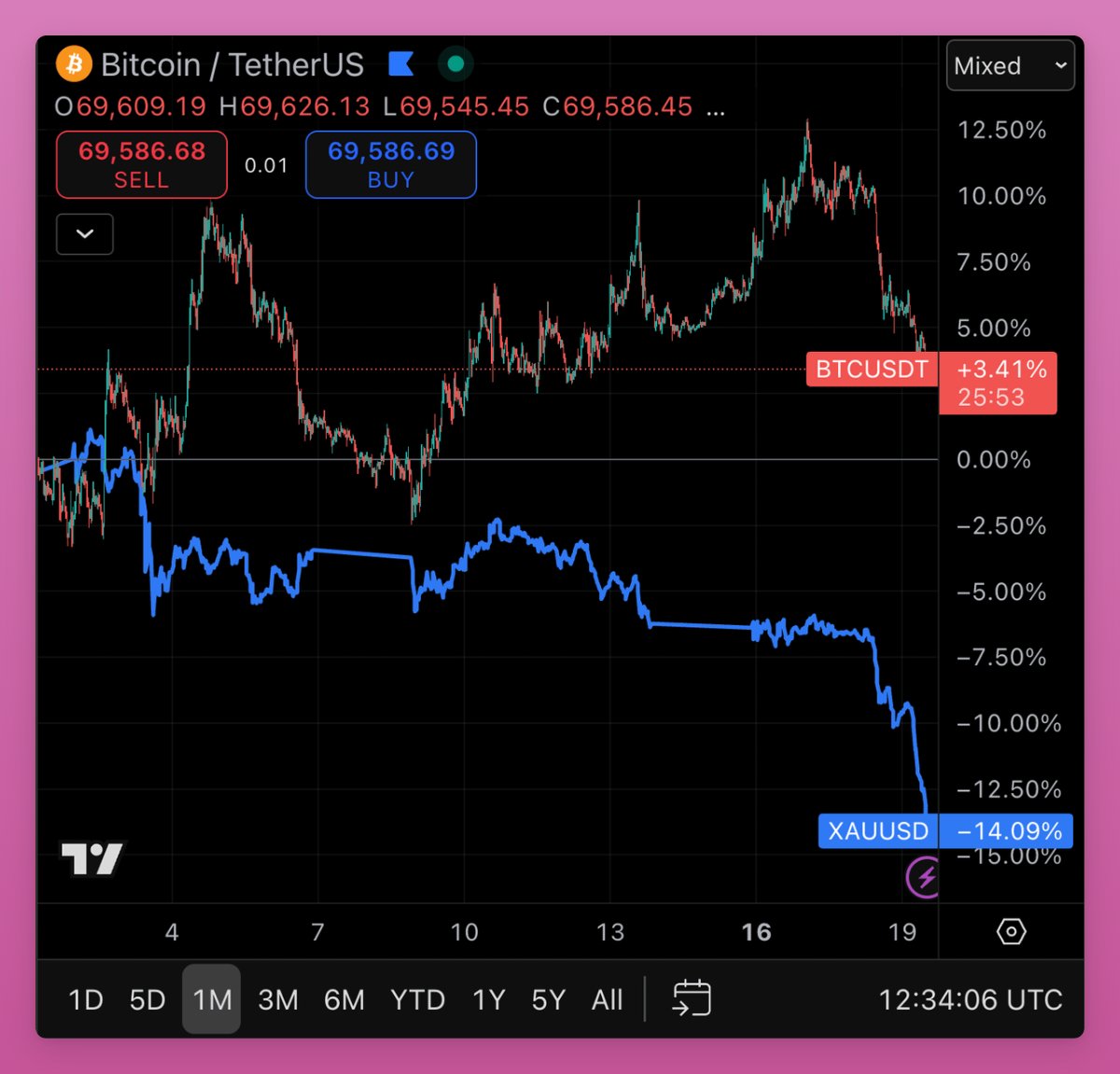 Gold dumping 17% from ATH is saving Bitcoin's image. In a macro-uncertain and potentially inflationary environment where gold should perform well, it's selling off too. Narrows the gap between BTC and gold performance without BTC having to do anything. I wished BTC would save face by pumping to catch up with gold. But gold dumping achieves a similar effect. At the end of the day, liquidity flows drive the market. Everything is a trade in short-term periods.